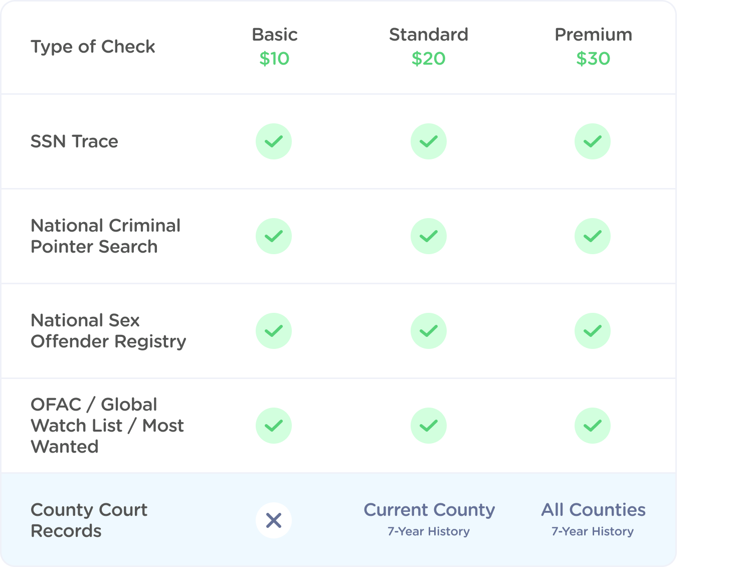 We offer three background check packages: