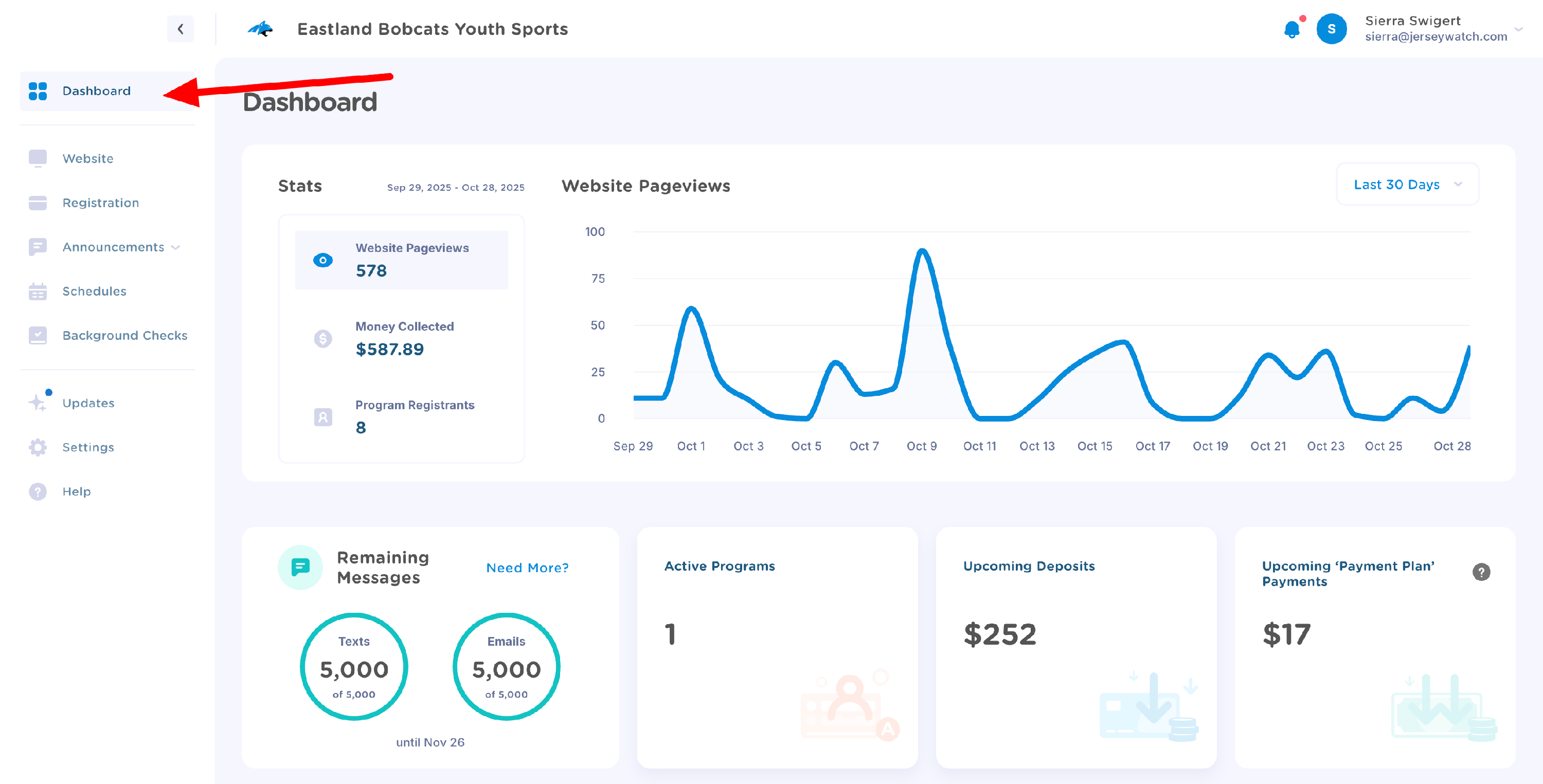 If you'd like to see all donations made in one place (including donations made during registration), navigate to the Dashboard within your account: