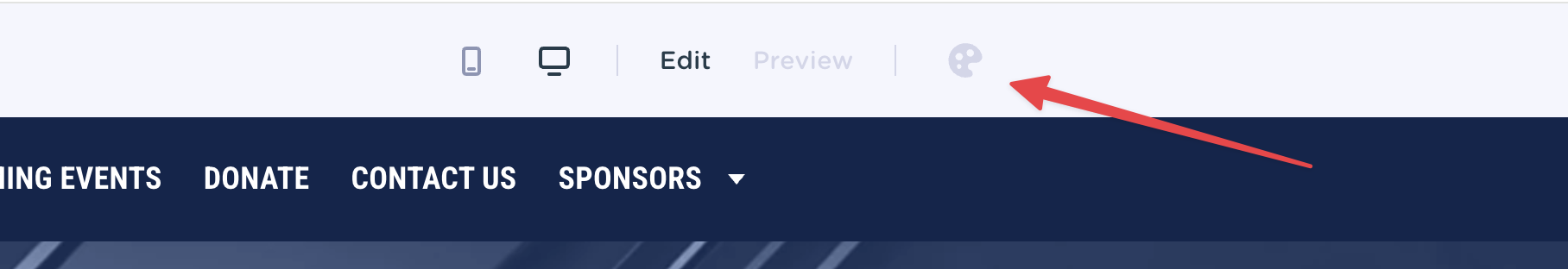 Start by clicking the paint palette icon at the top of your website: