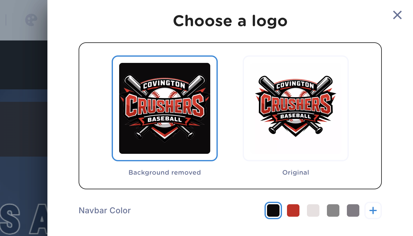 Upload a new logo or edit an existing one. Our system will allow you to either choose the version without a background or keep the original. You will also be able to choose your top navigation color.