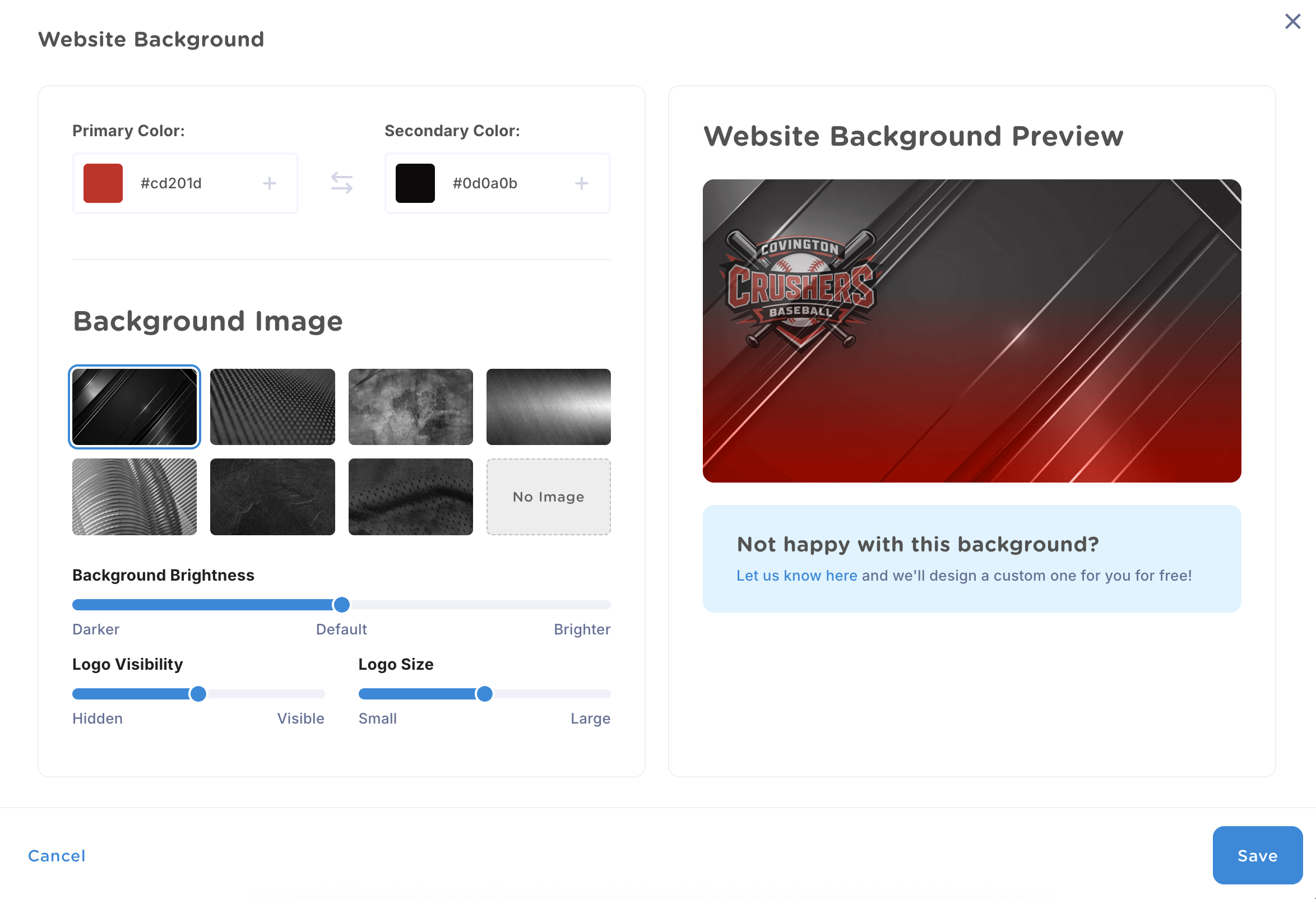 Choose from different background types based on your sport, or select a basic gradient or color. You can also adjust background brightness, logo visibility, and logo size.