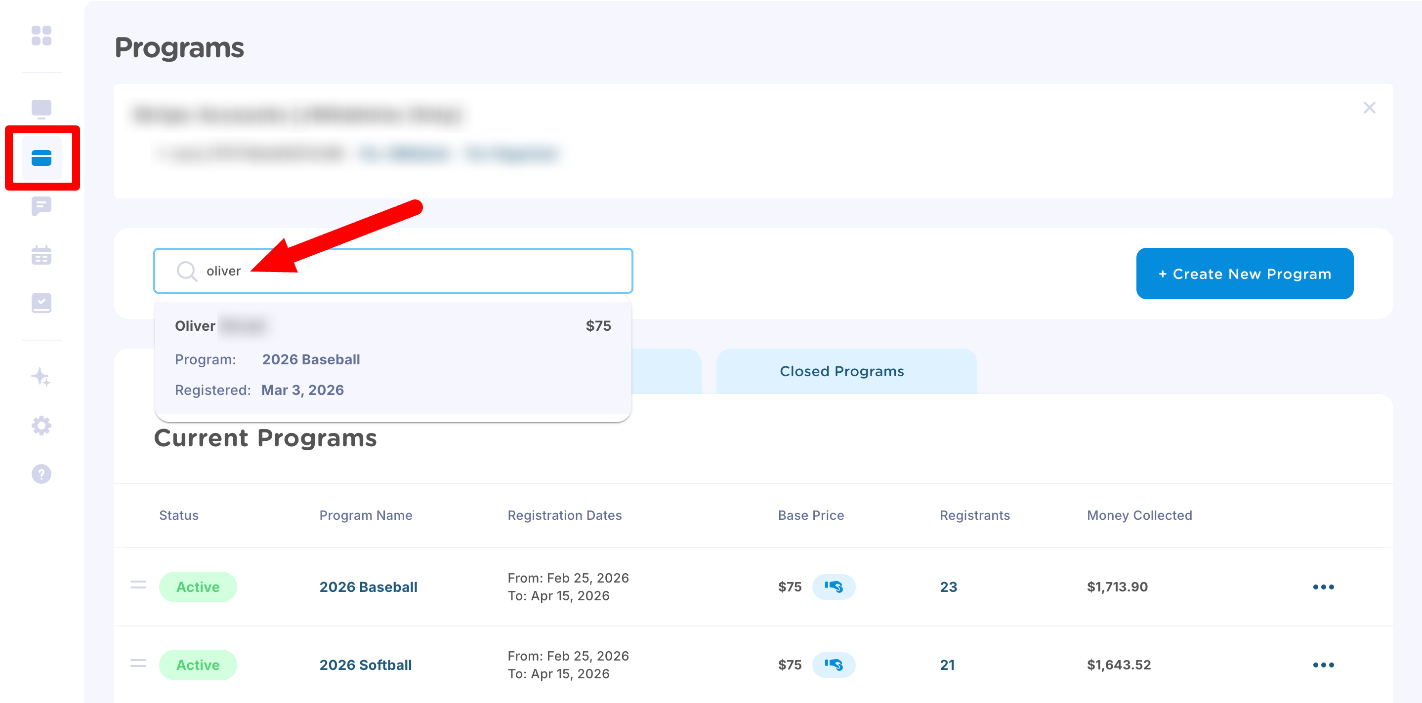 1. Go to your admin registration page and search for the registrant's name whose installment needs canceled