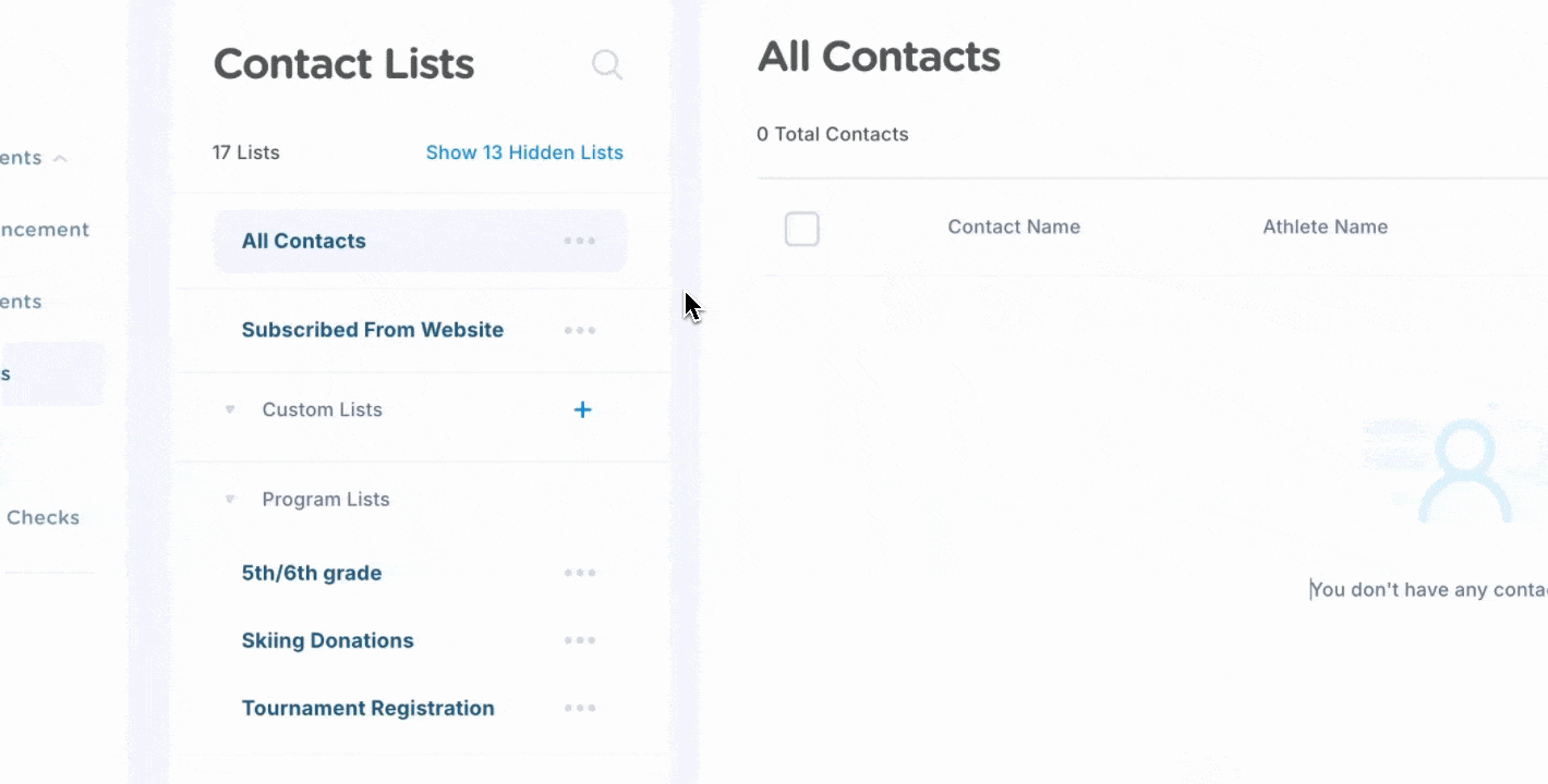 To manually create a new list, click the + button beside Custom Lists and title it. From there, you can manually add individual contacts