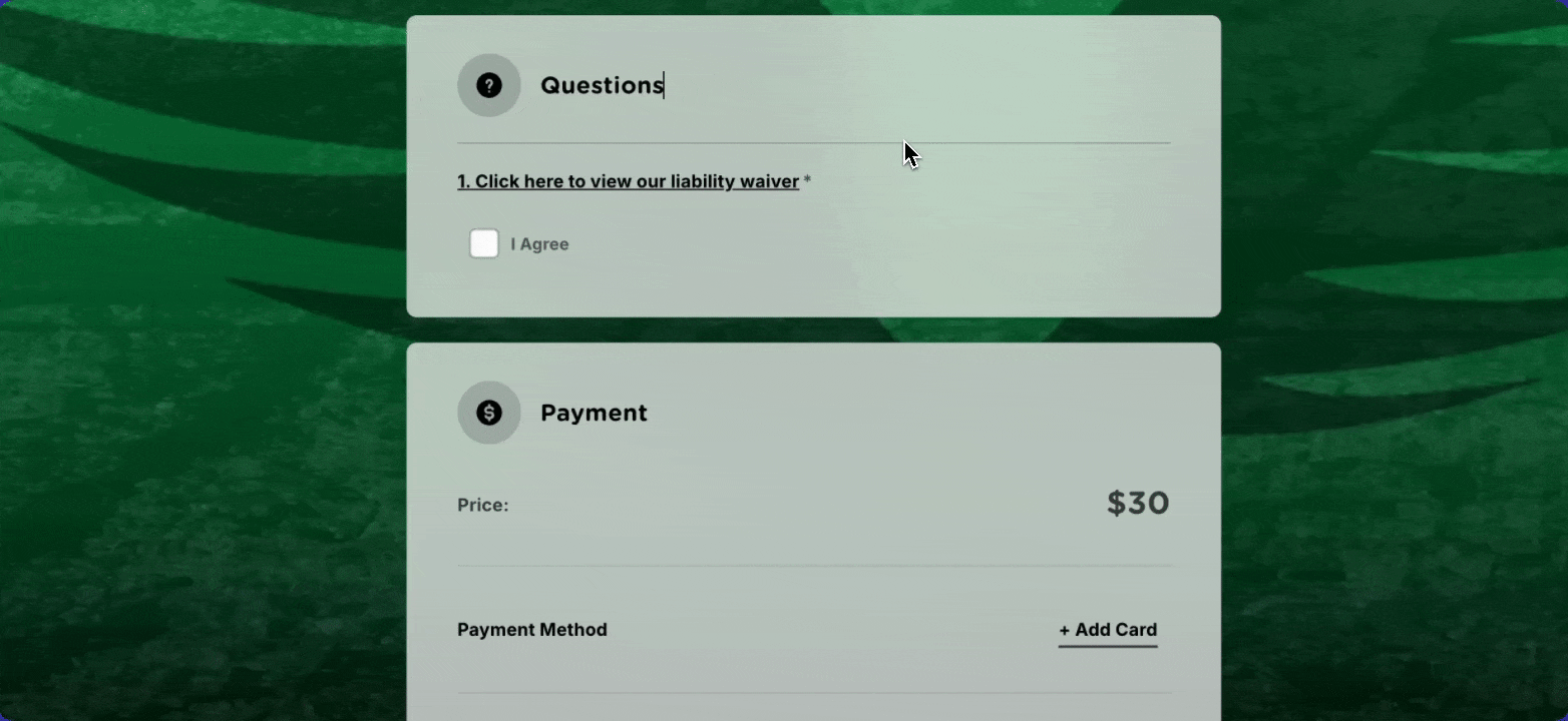 4 Enter in the question text which will link to the waiver (Ex: Click here to view our liability waiver)